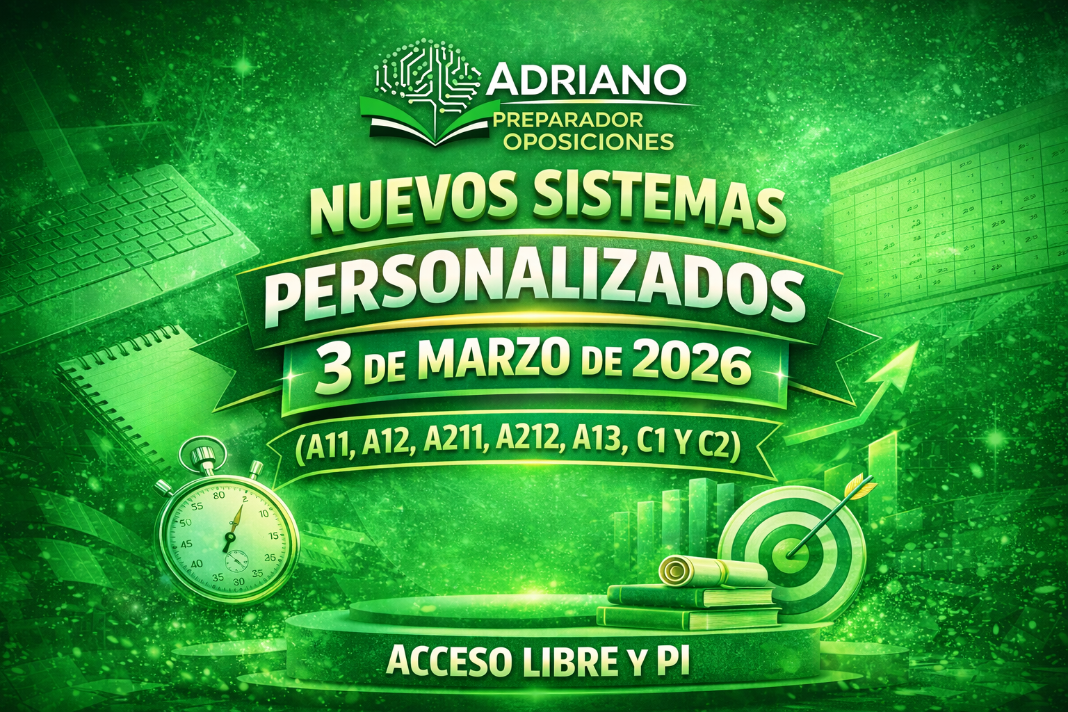 Iniciamos preparaciones tanto en acceso libre como en promoción interna (excepto la PI de A1.1300, que no podrá iniciarse hasta que se confirme el contenido definitivo del temario).